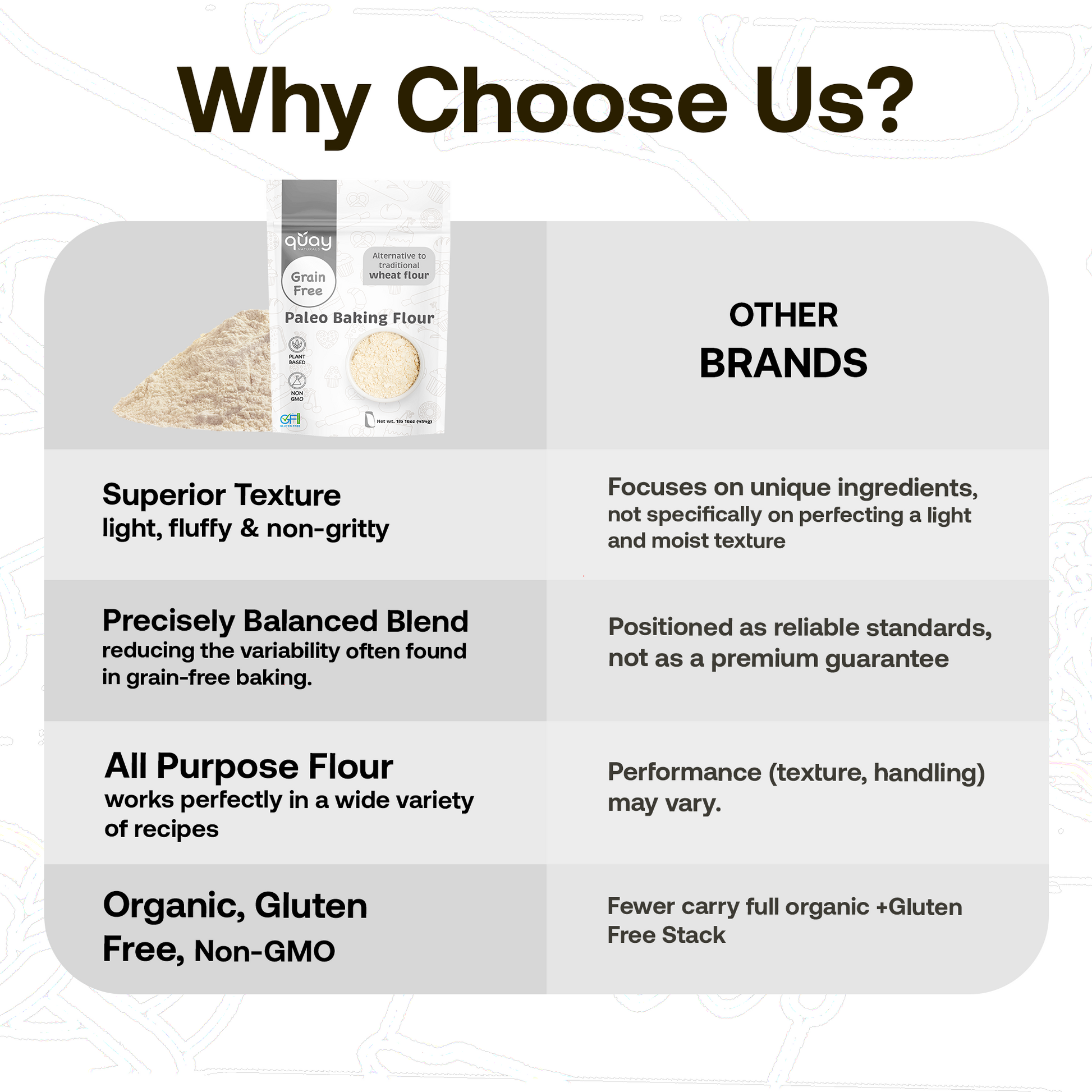 Quay Naturals Paleo Baking Flour – a grain-free blend of almond, coconut, arrowroot & tapioca for perfect pancakes, muffins & more.